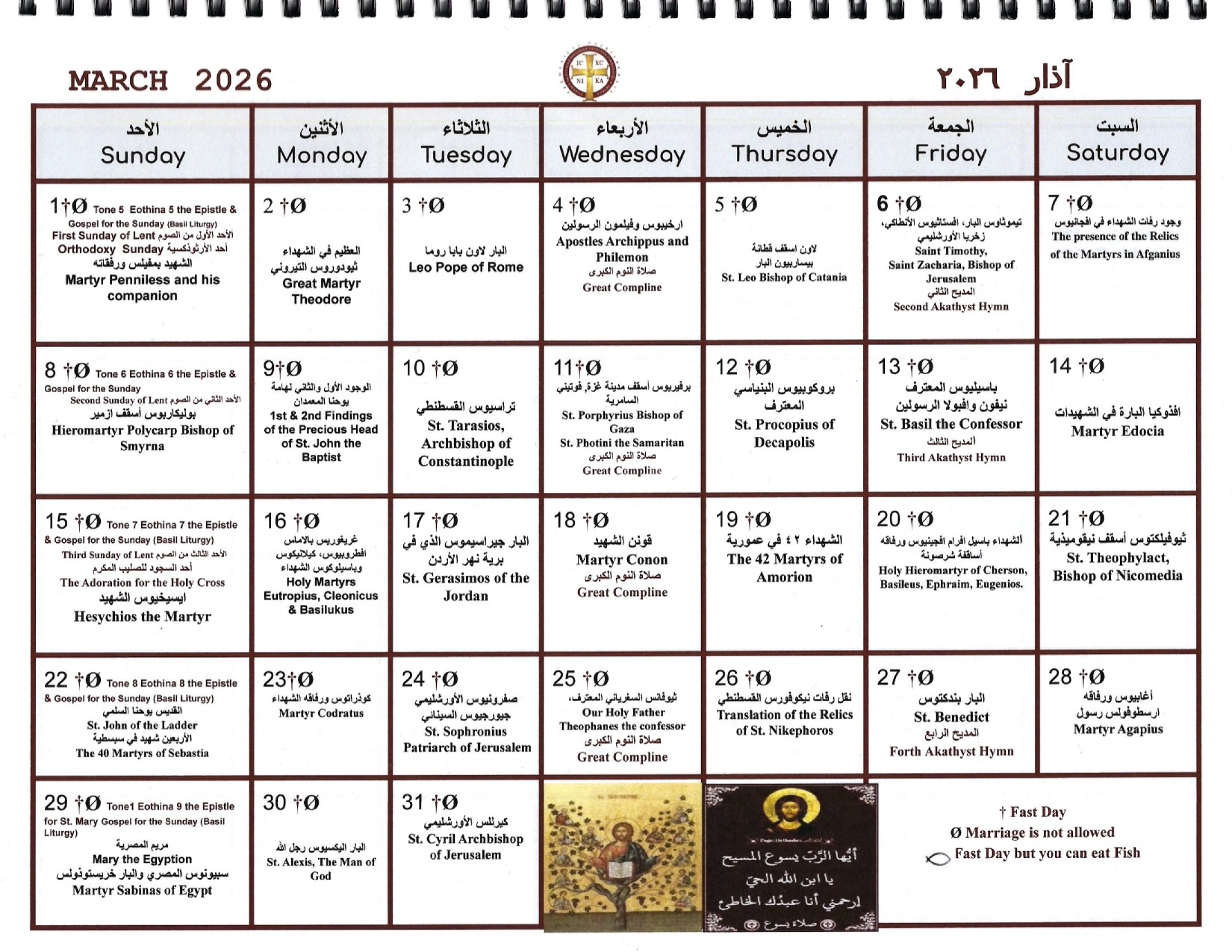 **This Vicariate follows the Old Julian Church Calendar and traditions set by the Patriarchate of Jerusalem.